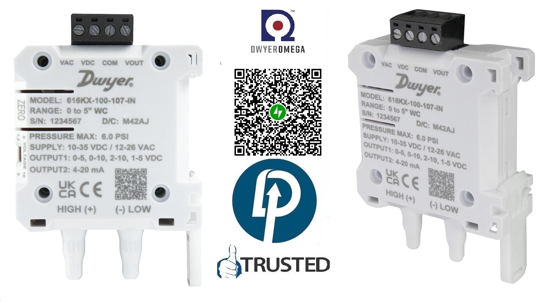 The 616KX Series Differential Pressure Transmitters offer installers and maintenance professional’s Maximum Flexibility in Pressure Ranges within a compact design.As Dwyer’s smallest differential pressure transmitter,it ensures simplicity with an edge-mounted push-button zero for easy access in any mounting configuration and features field-selectable output signals.The molded housing supports three sizes of both imperial and metric process connections, with optional 1/8″ NPT or BSPT Threaded models, ensuring easy and flexible process connections.The 616KX Series ensures exceptional stability and repeatability,minimizing drift and enhancing long-term reliability.The robust construction enables operation in demanding conditions,while the user-friendly interface allows for easy installation and calibration. Available in multiple ranges and outputs,These transmitters seamlessly integrate into existing systems, providing real-time monitoring and control.